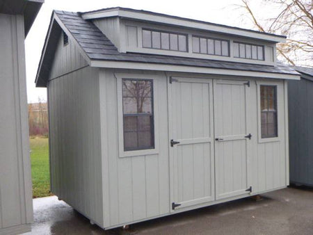 The 8x12 Transom Shed offers a perfect blend of storage space and modern design. Its sleek transom windows allow natural light to filter in, creating a bright and inviting interior while maintaining privacy and security.